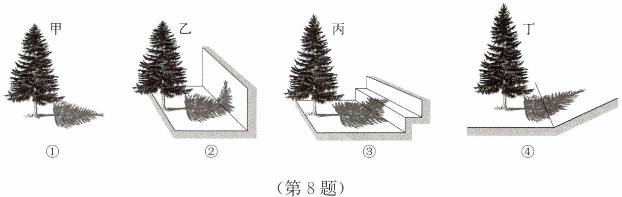 8. 在“测量物体的高度”活动中,某数学兴趣小组的 4 名同学选择测量校园里 4 棵树的高度. 在同一时刻他们分别做了以下工作: