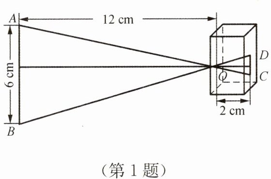 1. 图为小孔成像的示意图. 根据图中标注的尺寸,蜡烛 $ AB $ 在暗盒中所成像 $ CD $ 的高度是