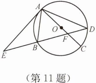 11. 如图,$\odot O$ 的直径 $AC$ 与弦 $BD$ 相交于点 $F$,点 $E$ 在 $DB$ 的延长线上,$\angle EAB = \angle ADB$.