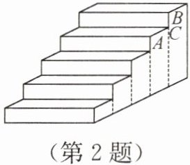2. 如图,某楼梯的每个台阶宽$AC$为$30\ \mathrm{cm}$,高$BC$为$15\ \mathrm{cm}$,则该楼梯倾斜角的正切值等于