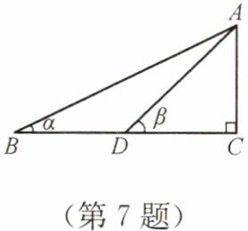 7. 如图,在$\triangle ABC$中,$\angle C = 90^{\circ}$,$AD$是中线,$\angle ABC = \alpha$,$\angle ADC = \beta$. 下列结论中,正确的是(