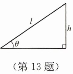 13. 如图,已知一商场自动扶梯的长$l$为$10\ \mathrm{m}$,该自动扶梯到达的高度$h$为$6\ \mathrm{m}$,自动扶梯与地面所成的角为$\theta$,则$\tan \theta$等于(