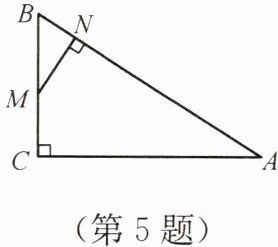 5. 如图,在 $ \triangle ABC $ 中, $ \angle C = 90^{\circ} $,点 $ M $ 在边 $ BC $ 上, $ MN ⊥ AB $,垂足为 $ N $.