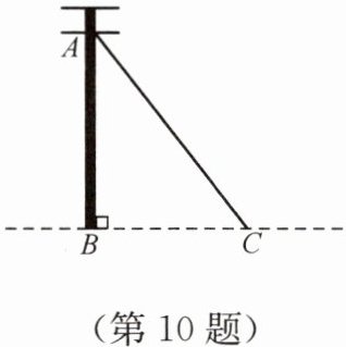 10. 如图, $ AC $ 是电线杆 $ AB $ 的一根拉线,测得 $ BC = 6 \mathrm{ m} $, $ \angle ACB = 52^{\circ} $,则拉线 $ AC $ 的长为(