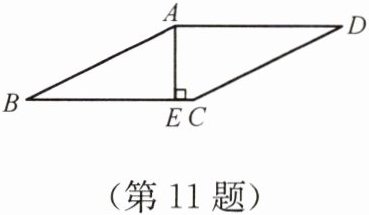 11. 如图,在菱形 $ ABCD $ 中, $ AE ⊥ BC $,垂足为 $ E $, $ EC = 1 $, $ \sin B = \frac{5}{13} $. 求菱形 $ ABCD $ 的周长和面积.