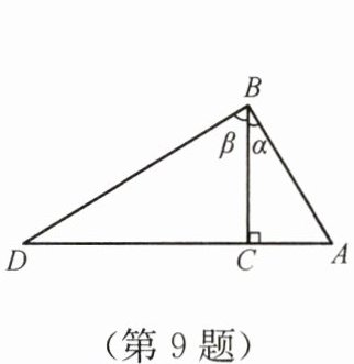 9. 如图,在 $ \mathrm{Rt} \triangle ABD $ 中, $ \angle ABD = 90^{\circ} $, $ BC ⊥ AD $,垂足为 $ C $. 给出下列四个结论: