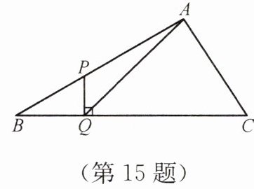 15. 如图,在 $\triangle ABC$ 中,$\angle B=30^{\circ}$,$P$ 是 $AB$ 上的一点,$\frac{BP}{PA}=\frac{1}{2}$,$PQ⊥ BC$,垂足为 $Q$,连接 $AQ$. 求 $\cos\angle AQC$ 的值.