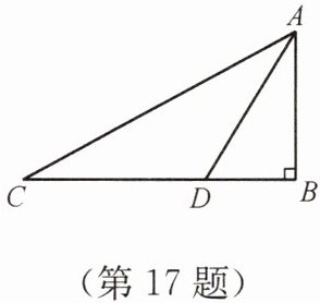 17. 如图,在$Rt\triangle ABC$中,$\angle B = 90^{\circ}$,$AB = 8$,$\angle CAB$的平分线$AD$交$BC$于点$D$,且$AD = \frac{16\sqrt{3}}{3}$. 求$\angle C$的度数及边$BC$、$AC$的长度(保留根号).