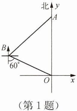 1. 如图,机器人从点$A$沿西南方向行进$4\sqrt{2}$个单位长度到达点$B$,在点$B$观察原点$O$在南偏东$60^{\circ}$的方向,则点$A$的坐标为