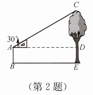 2. 如图,小颖用含 $ 30^{\circ} $ 角的三角板测量一棵树的高度. 她与树之间的水平距离 $ BE $ 为 $ 5 $ m,小颖的眼睛距地面的距离 $ AB $ 为 $ 1.5 $ m,这棵树的高度是(