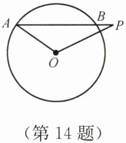 14. 如图,已知 $ \odot O $ 的半径为 $ 5 \mathrm{ cm} $,弦 $ AB = 8 \mathrm{ cm} $,$ P $ 是 $ AB $ 延长线上的一点,$ BP = 2 \mathrm{ cm} $,则 $ \tan \angle OPA $ 等于(