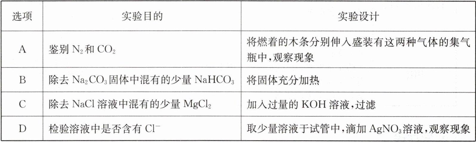 A. 将燃着的木条分别伸入盛有N₂和CO₂的集气瓶中,木条均熄灭,无法鉴别,A错误;