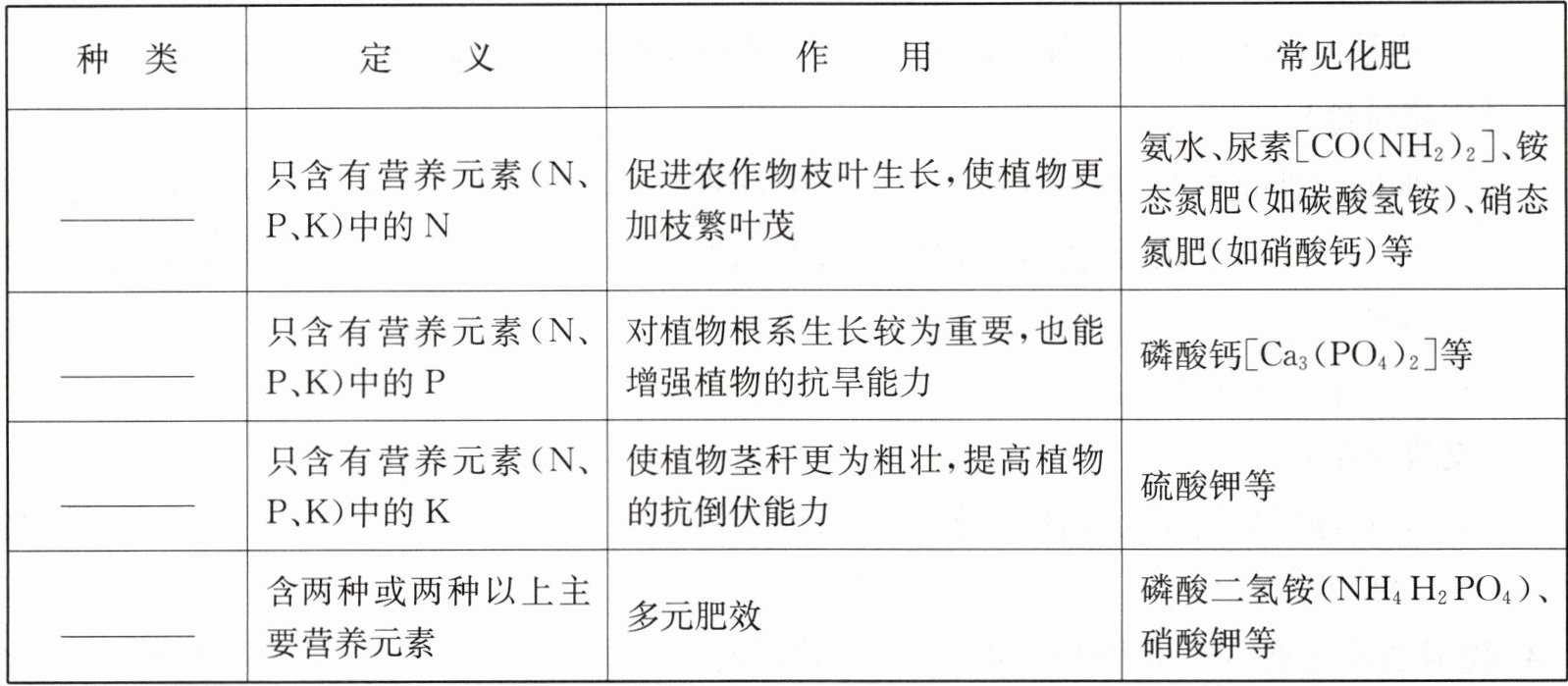 【注意】铵态氮肥要避免与熟石灰、草木灰(含碳酸钾)等碱性物质混用,否则会降低肥效。