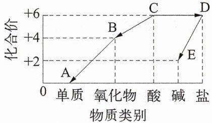 11. 小芳以化合价为纵坐标、物质类别为横坐标绘制如下价类二维图。其中 A、B、C、D、E 是初中化学常见物质,且都含氧元素,各物质中均有某种组成元素的化合价与纵坐标的数值相对应。“→”表示物质间的转化关系,其中 B 通常为无色、无气味的气体,D 的水溶液呈蓝色。