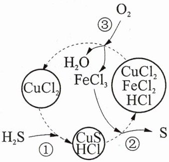 B.反应②为 $ \mathrm{CuS} + 2\mathrm{FeCl}_{3} \xlongequal{} \mathrm{CuCl}_{2} + 2\mathrm{FeCl}_{2} + \mathrm{S} $
