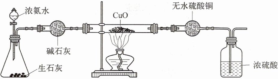 B. 玻璃管中发生反应:$3CuO + 2NH_3 \xlongequal{\triangle} 3Cu + N_2 + 3H_2O$,CuO(相对分子质量80)转化为Cu(相对分子质量64),固体质量减少,B正确;