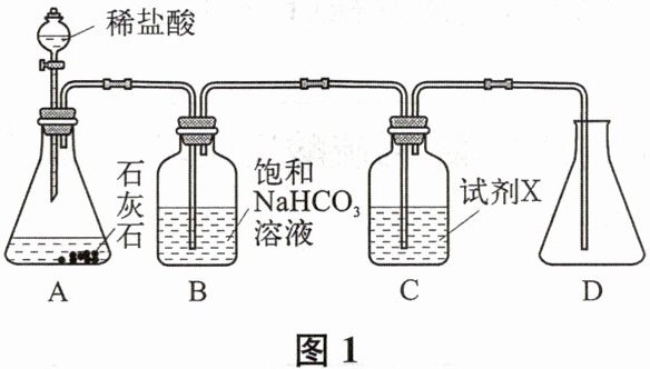 (2) ① 装置B中饱和NaHCO₃溶液的作用是除去CO₂中的HCl气体,CO₂中含有HCl气体的原因可能是