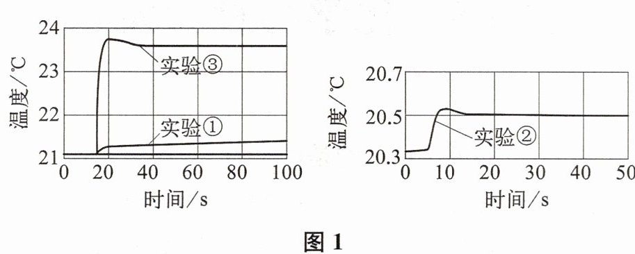 用数字化实验技术测得3个实验中溶液的温度随时间变化的关系如图1所示。