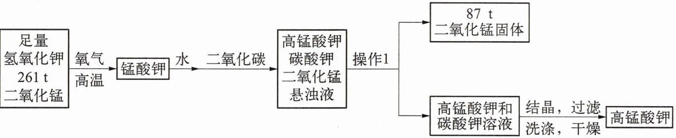 (6) 经上述流程,理论上净消耗(投入减去产出)的二氧化锰中锰元素的质量等于生成的高锰酸钾中锰元素的质量。则该流程理论上可生成高锰酸钾