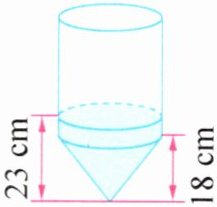 答案:8.11 解析 容器倒过来时,原来圆柱部分的水高度不变,是23-18=5(厘米),圆锥部分高18厘米的水倒入圆柱,水的高度变为18÷3=6(厘米),合起来是5+6=11(厘米)。