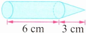 圆锥体积:$\frac{1}{3}×15×6 = 30\,\mathrm{cm}^3$
