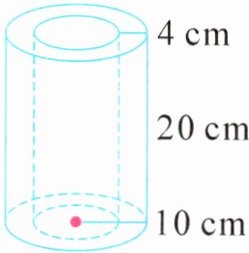 3. 如图,给一个圆柱形管道部件表面喷漆,它高 20 厘米、厚 4 厘米,底面大圆半径为 10 厘米。需要喷漆的面积是(