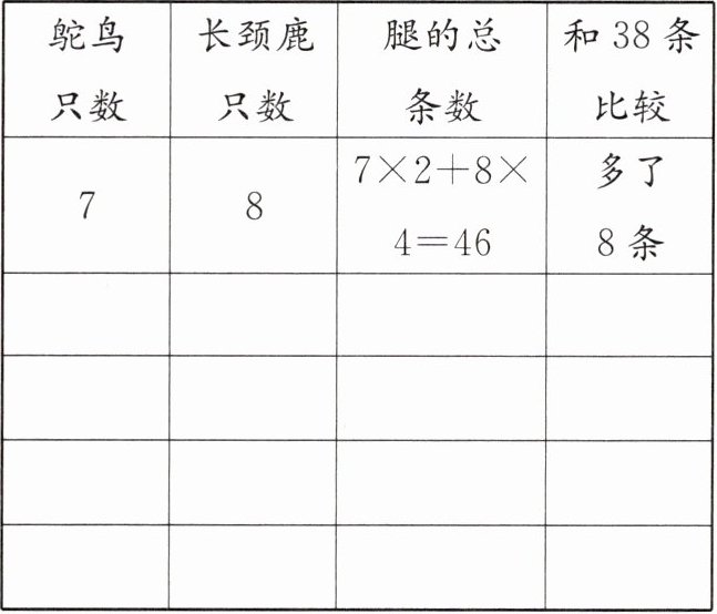 (2) 先假设鸵鸟和长颈鹿的只数如下表,再调整。