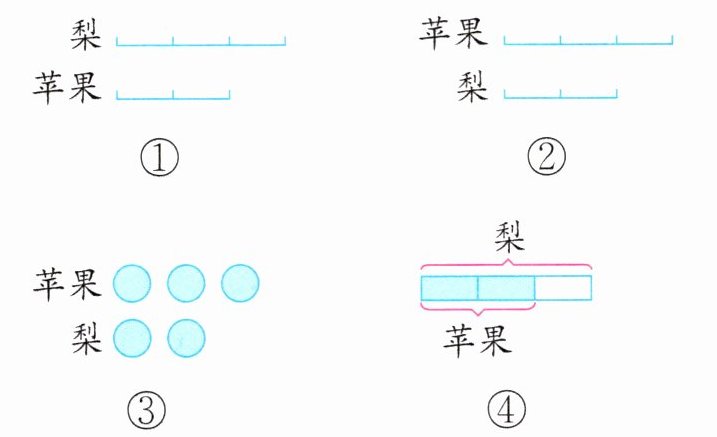 算理理解 一筐苹果的质量正好是一筐梨的$\frac{2}{3}$,用图表示这个数量关系,正确的是(
