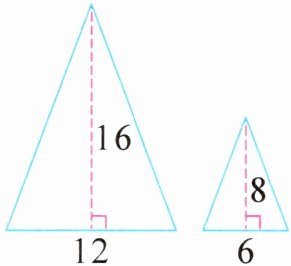 (3)(2025·淮安市期末)把下面的三角形按1∶3的比缩小后,① 相对应的线段$BC$的长度;② 三角形的面积;③ $∠A$的度数;④ $AB$与$AC$长度的比值。四个要素中,不发生变化的有(