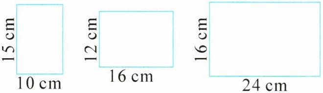3. 聪聪为布置教室墙报,剪了三张大小不同的长方形纸(如下图)。每张长方形纸的长与宽的比分别是(