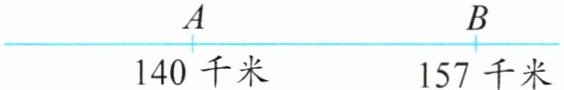 A、B两点间的实际距离为$157 - 140 = 17$千米。