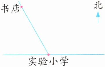 5. 如图,书店与实验小学的实际距离是300米。量出这两个地点的图上距离,并算出这幅图的比例尺。