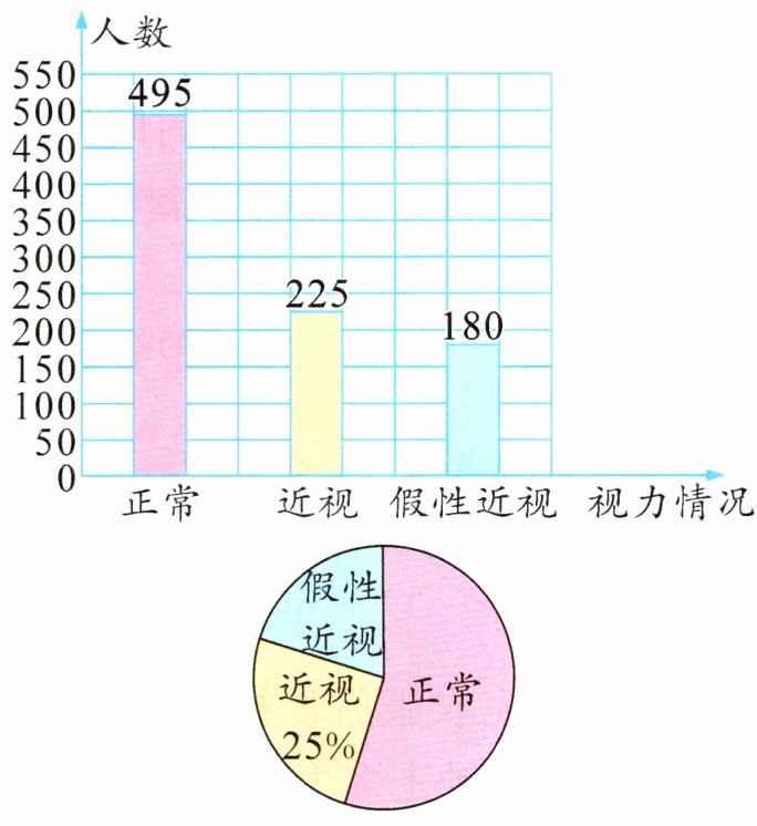 2. 某小学对全校学生的视力情况进行统计,并制成如下统计图。