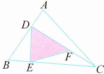 由题意可知,线段之间存在着倍数关系,把线段之间的倍数关系转化为比的关系,通过线段之间比的关系求出线段所在的等高三角形的面积之比,结合已知的 $\triangle ABC$ 的面积,求出 $\triangle DEF$ 的面积。