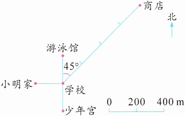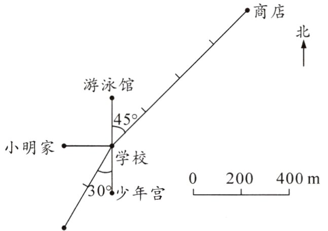 (2)若从商店到学校再到小青家共 $2700$ 米,则这幅图的比例尺是 $1:$(