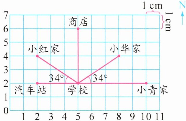 )方向走到小青家。