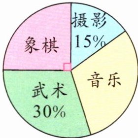 3. 下面是某小学六年级学生参加摄影、象棋、武术、音乐四个兴趣小组人数的扇形统计图,下面说法错误的是(