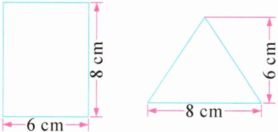 3. 从立着的一个圆柱和一个圆锥的前面观察,看到的形状分别如下图。