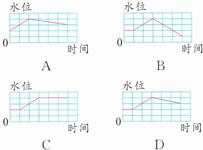 学科融合 一只乌鸦看到一个水位较低的瓶子,它想喝里面的水,喝不到,深思后,聪明的乌鸦衔来若干小石子放入瓶中,水位上升,乌鸦喝到了水。从乌鸦看到瓶子时开始计时,下面最符合故事情节的折线统计图是(