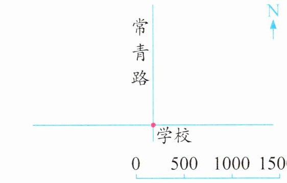 (2)学校北面 1 千米处是公园路,与常青路垂直,在图中画出公园路所在的位置。
