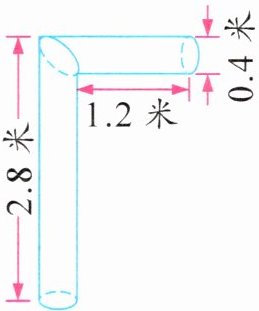 答案:8. 3.14×0.4×(2.8+1.2)=5.024(平方米) 解析 根据题图可以把这个不规则的立体图形转化成底面直径是0.4米、高是2.8+1.2=4(米)的圆柱,再求出这个圆柱形燃气排气管的侧面积即可。