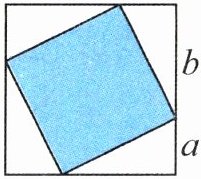 9. 如图,4 个相同的直角三角形拼成了一个正方形,已知$a:b = 1:2$,则涂色部分的面积占大正方形面积的$\frac{(\ \ \ \ \ )}{(\ \ \ \ \ )}$。