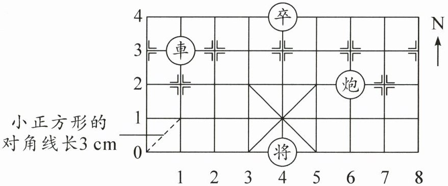 在(4,0),则在(5,1)北偏东 45°方向 3 厘米处的棋子是(