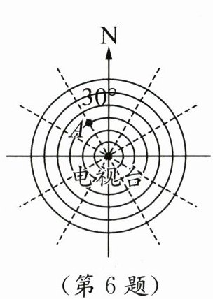 6. 电视台信号覆盖区域如图,最小的圆的半径以及每相邻两个圆之间的距离都是 5 千米。以电视台为观测点,点 A 在(