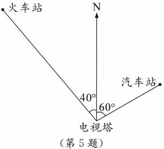 5. 从图中量得火车站到电视塔的距离是 5 厘米,电视塔到汽车站的距离是 2.5 厘米。