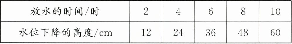 4. 一个水池某天开始放水,放水的时间和水位下降情况如下表。