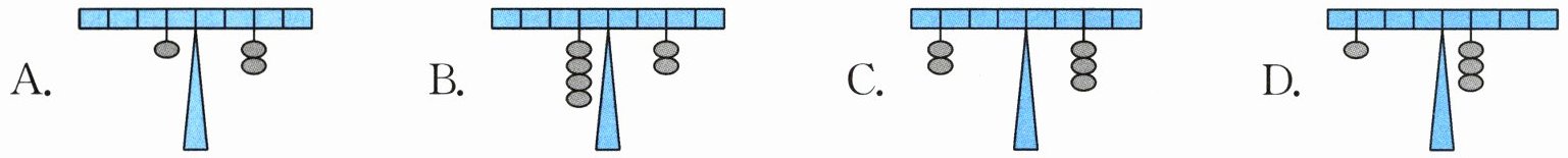 4. 小力用一根质地均匀的竹竿和若干颗完全相同的珠子做平衡实验。他先找到竹竿的中心点,再在中心点两侧每隔3厘米作一个标记,并把竹竿的中心固