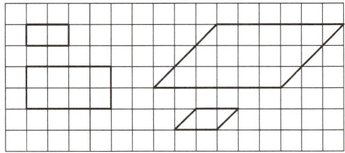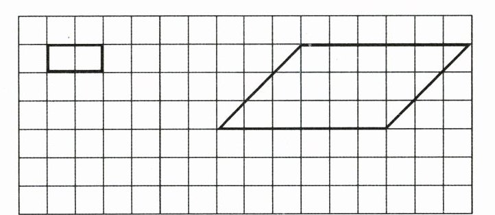 1. 先按2:1的比画出长方形放大后的图形,再按1:3的比画出平行四边形缩小后的图形。(2分)