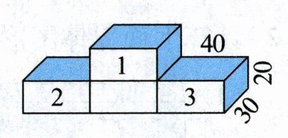 2. 如图(单位:厘米)的领奖台由四个完全相同的长方体木块拼合而成,在它的前、后两面涂上白色油漆,上面和侧面铺上地毯。