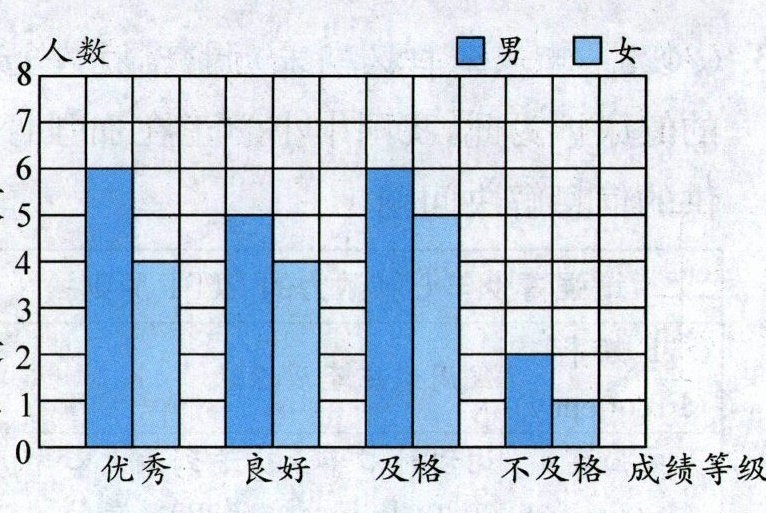 (2) 男生成绩等级为(